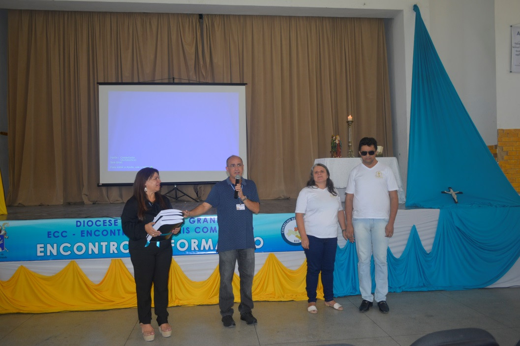 No dia 25 de fevereiro de 2018 aconteceu nas dependências da Escola Estadual da Prata, na cidade de Campina Grande/PB, uma Formação para Equipes Dirigentes de 1ª e 2ª Etapas da Diocese. A formação foi preparada pelo Casal Diocesano Bosco e Lêda e conduzida pelo Casal Regional/NE 2 - Washington e Miriam. Durante a formação destacamos um momento especial de grande emoção, quando foi entregue uma cópia do Documento Nacional em “Braile” para o casal Matias e Denise, ambos deficientes visuais. O Casal em referência atualmente exerce a função de Pós-Encontro da Paróquia do Santíssimo Salvador. Momento de muitas graças, pois o ECC acolhe a todos sem distinção, mantendo sua característica de Serviço Escola, prepara a todos para o bom desempenho de suas funções.