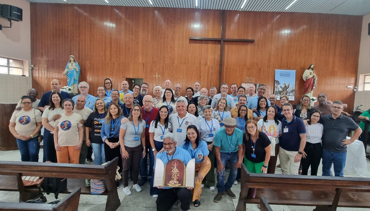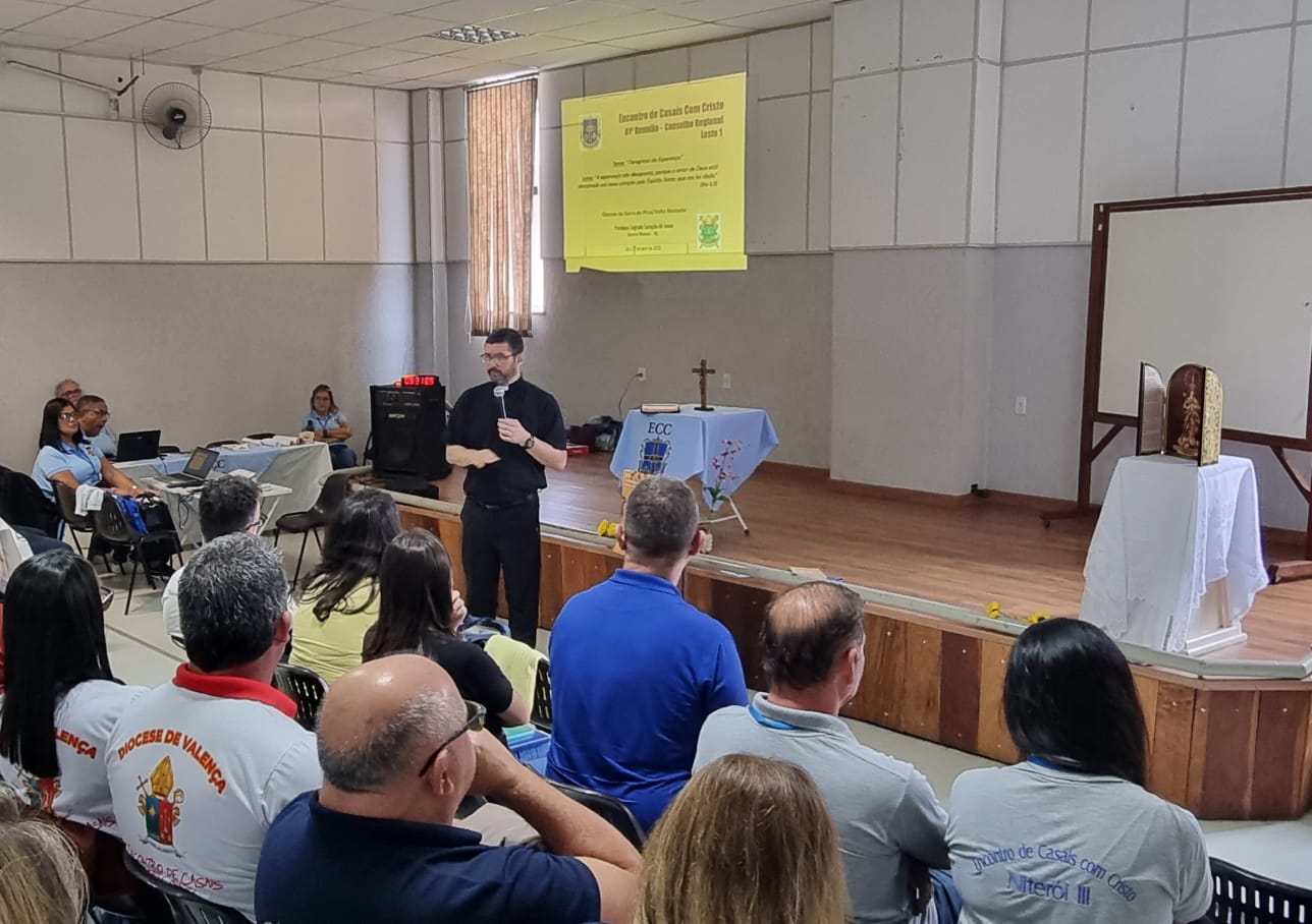 Nos dias 26 e 27 de abril de 2025, aconteceu a 61ª Reunião do Conselho Regional do ECC Leste 1 no Centro Diocesano de Formação Cristã localizado nas dependências da Paróquia Sagrado Coração de Jesus da Diocese de Barra do Piraí/Volta Redonda/RJ. A reunião ocorreu com reflexões envolvendo o tema Peregrinos da Esperança e o Lema A esperança não desaponta, porque o amor de Deus está derramado em nosso coração pelo Espírito Santo que nos foi dado (Rm 5,5). Iniciou-se com a Santa Missa presidida pelo Bispo Diocesano Dom Luiz Brito com a presença do Pároco Padre Flávio, Padre Deivi Santana de Oliveira Diretor Diocesano da Diocese Barra do Piraí / Volta Redonda, Monsenhor Paulo Cardoso, Diretor Diocesano do Vicariato de Madureira e os Diáconos da Paróquia Sagrado Coração de Jesus. Nesta reunião foi apresentado o novo Casal Regional e sua Equipe do Conselho que assumirão em julho no XIX Congresso da Região Leste. Padre Deivi ministrou uma palestra com o tema e o lema da reunião, a qual nos trouxe muitas reflexões sobre a esperança na vida e em nossa missão, confiantes que o amor de Deus nos cura e está derramado em nossos corações. No decorrer da reunião, diversas atividades foram realizadas, como Círculos de Estudos para mais informações sobre o Documento Nacional, oração do terço Mariano realizado pelo Terço dos Homens da paróquia, dinâmicas para incentivar a união e o trabalho em equipe entre outras. O conselho realizou um Gesto Concreto que foi a doação de alimentos para Vila Vicentina/Asilo São José de Barra Mansa/RJ. Ocorreu também uma palestra sobre a ação missionária do Padre Alfonso Pastore, ministrada pelo casal regional Gualter e Tania, a qual nos fez refletir sobre a importância de agir como missionários e peregrinos, seguindo o caminho da fé firmes na missão em prol das famílias, cultivando a união, o ânimo e a alegria de servir. Sabendo que o essencial é manter o amor acreditando que o bem existe!