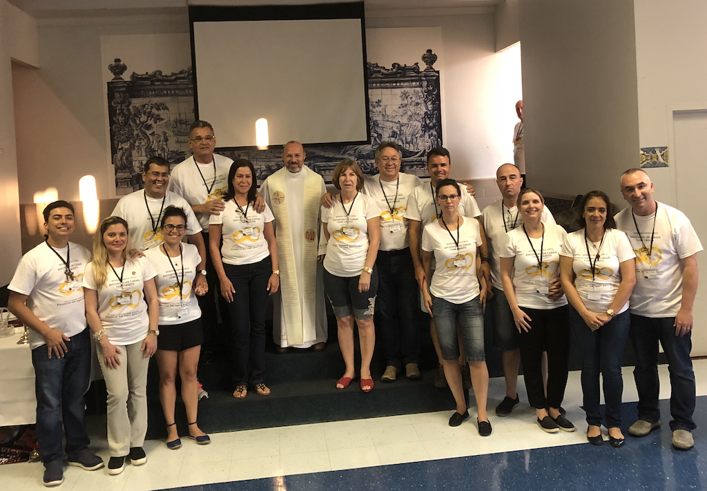 Equipe Brasileira envolvida na implantação Diretor Espiritual, Pe. Luiz Laudino representando o Assistente Eclesiástico Nacional Dom Benedito Gonçalves dos Santos, os Casais da Secretaria Nacional Antônio Bandeira de Assunção e Cleide Delcenita Ribeiro de Assunção; Eddie Guttemberg Alves Ferreira e Maria Luiza D’Agustin Ferreira e os casais convidados por Dom Benedito: Marcos Kasuyuki Honda e Regina Meia Silva Honda; Carlos Eduardo Empke Vianna e Andrea Carla Gonçalves Vianna e Emanuel Acaiaba Reis de Souza e Eliene Medeiros de Sousa Reis.