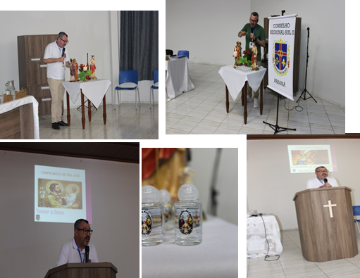 Preparamos o Tema: Comprometimento dos Casais com Cristo e Lema: Sede comprometido a exemplo de Maria e José. Dentro desta temática foram feitas duas espiritualidades: Água do batismo e a Vocação inspirada pela Sagrada Família e a dinâmica da massinha de modelar retratando a indissolubilidade do Matrimônio e do Sacerdócio e duas Santas Missas.
