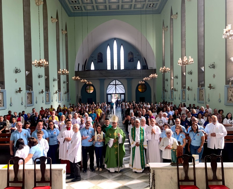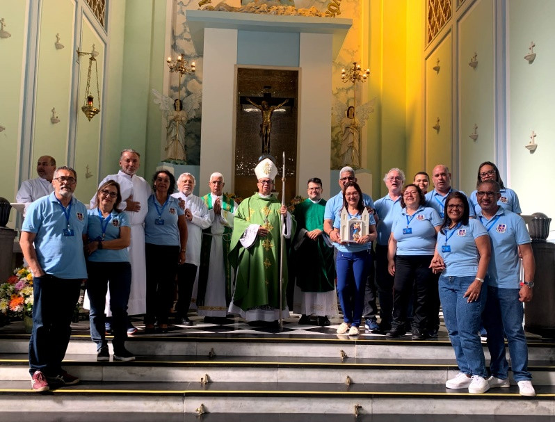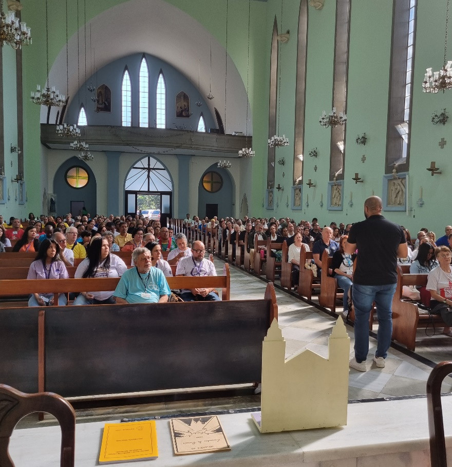 No dia 08 de Julho de 2023, no Santuário da Medalha Milagrosa/Tijuca RJ, aconteceu o Encontrão do ECC Região Leste 1 que teve como objetivo a espiritualidade e a integração do Dia Nacional do ECC com todas as pessoas que vivenciaram o ECC como os viúvos por exemplo. O evento iniciou-se com a Santa Missa presidida por Dom Roque Costa Souza, Bispo da Arquidiocese de São Sebastião do Rio de Janeiro. Foram realizadas Palestras com o Padre Jorge Carreira (Diretor Espiritual Regional) cujo tema foi ECC, lugar de sinodalidade e comunhão, pelo fim das divisões e testemunhos da unidade e Jorge e Neite (Casal Núcleo de Formação da Pastoral Familiar), com o tema Cultivar a paz e a espiritualidade no seu interior. Foi rezado o Terço com Jadir Barcellos do Terço da Batalha da Rádio Catedral. Assim todos vivenciaram uma manhã de reencontro e de muita espiritualidade!