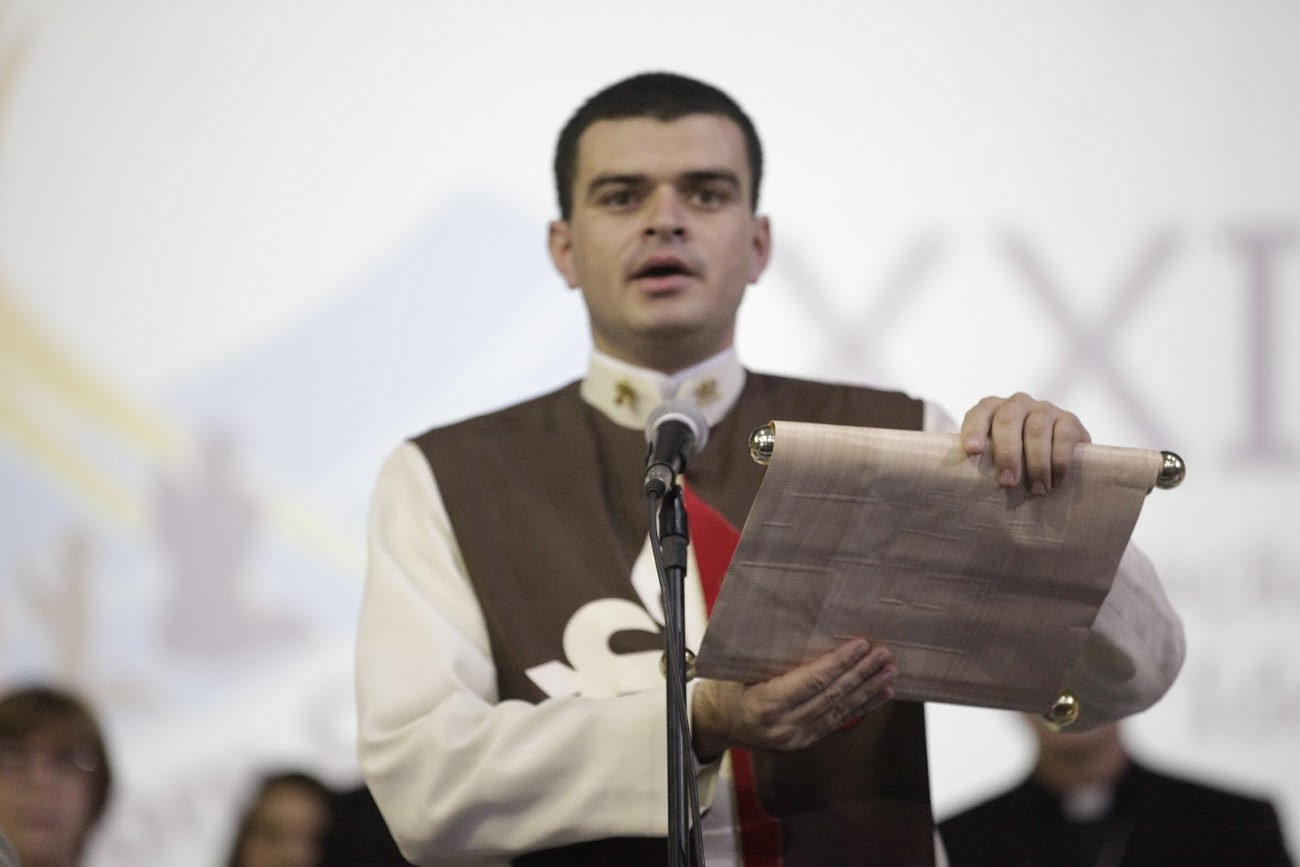 O momento foi conduzido por um grupo deintegrantes dos Arautos do Evangelho, que adentrou o auditório da Escola Militar ao som de trombetas. Houve a leitura do decreto assinado pelo Assistente Eclesiástico Nacional do ECC, dom Adair José Guimarães, anunciando que “hoje inicia o ano jubilar do Encontro de Casais com Cristo”. (assista ao vídeo com a leitura do decreto na íntegra).