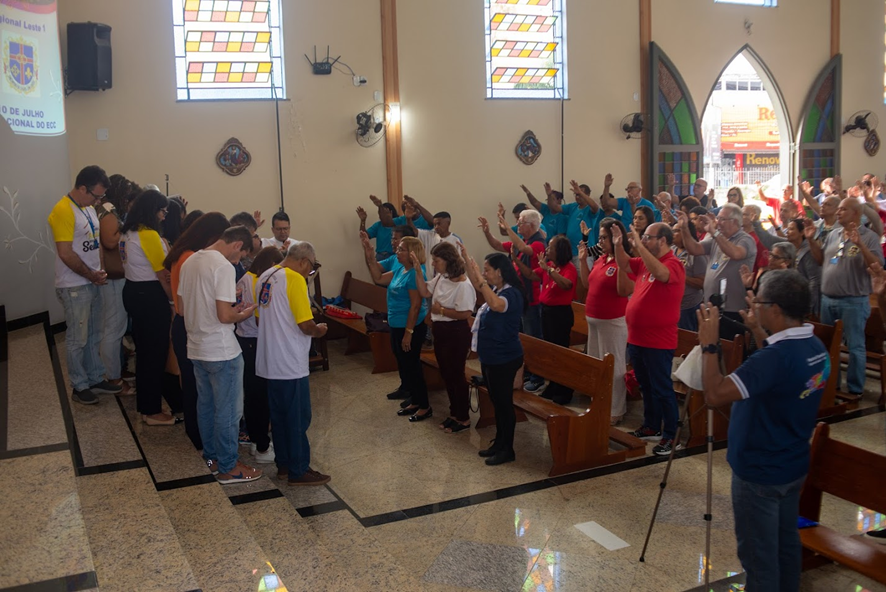 No dia 06 de julho de 2024, aconteceu na Paróquia Santa Cruz em Santa Cruz da Serra, Duque de Caxias- RJ, o Encontrão do ECC Região Leste 1. Teve como objetivo, a espiritualidade e a integração do Dia Nacional do ECC com todas as pessoas que vivenciaram o ECC. O evento iniciou-se com a Santa Missa presidida por Dom Tarcísio Nascentes, Bispo Diocesano da Diocese de Duque de Caxias. Dom Tarcísio ressaltou a importância do Serviço ECC nas paróquias como agente evangelizador das famílias. Gualter e Tania, Casal Regional, apresentaram a Equipe do Conselho Regional composta pelo Diretor Espiritual Padre Jorge Carreira, Casal Setorial Regional Setor I: Renato e Eliziane, Setor II: José Raimundo e Luciana, Setor III: Antonio e Benicéia, Casal Secretário: Jorge e Leila e Casal Finanças: Joni e Isa. O Diácono Melquisedec realizou uma pregação enfatizando o quanto a oração pessoal e em família nos fortifica na vida e na missão. O Padre Jorge Carreira, Diretor Espiritual Regional do ECC palestrou sobre o tema “Pastorais, Movimentos e Serviços: Lugares de Oração”. Logo após, Patrícia Gonçalves da Comunidade Coração Novo, testemunhou sobre a família e os desafios do nosso cotidiano. Como em 2025, o Rio de Janeiro sediará o XIX Congresso da Região Leste do ECC e em 2027 sediará o XXIV Congresso Nacional do ECC, os Casais das Equipes Dirigentes receberam uma bênção para que tenham um bom êxito nas atividades propostas. Foi uma manhã de louvor, com os músicos Ewerton e Ariana da Paróquia Santa Cruz; de oração pelos 25 anos da Pastoral Familiar da Diocese de Duque de Caxias com a presença da imagem peregrina da Sagrada Família e de momentos de alegria e de reencontro com os irmãos de diversas Paróquias do Estado do Rio de Janeiro.
