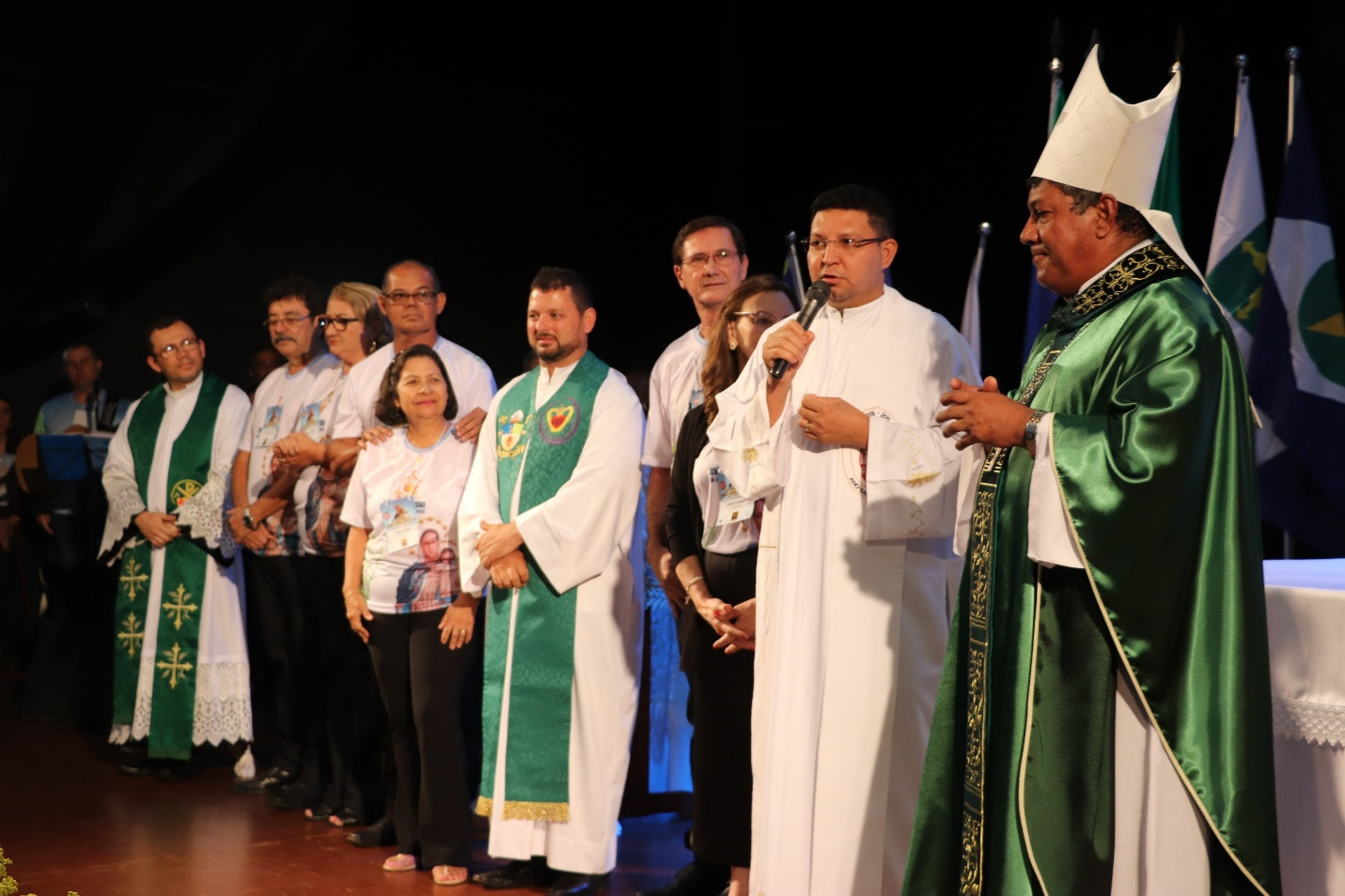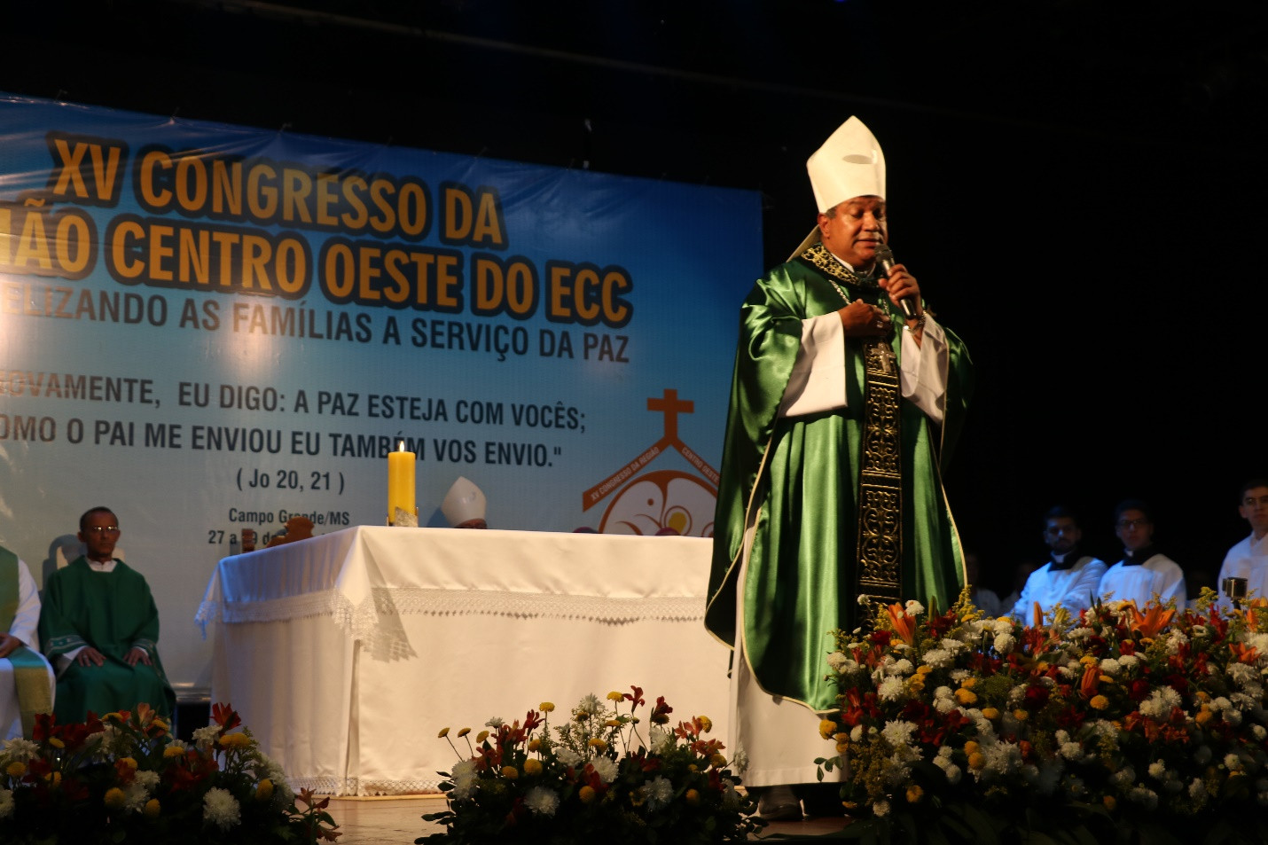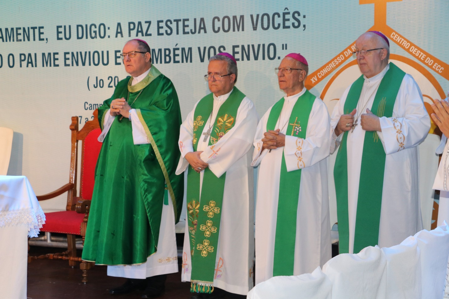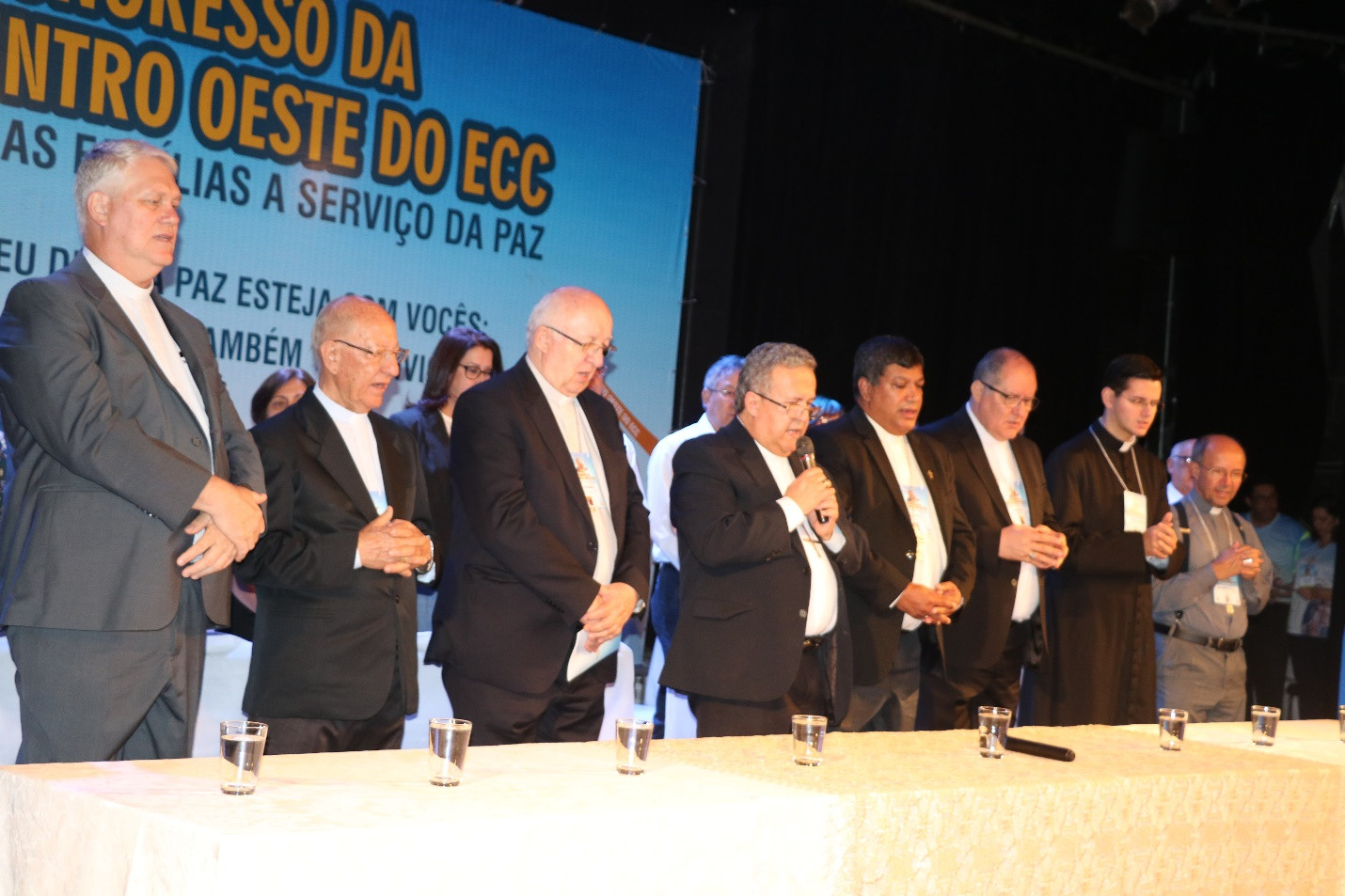 Padre Paulo Vital (Diretor Espiritual do Congresso), Dom Gentil (Bispo Emérito de Sinop), Dom Mariano (Bispo Auxiliar de Campo Grande), Dom Dimas Lara Barbosa (Arcebispo de Campo Grande), Dom Benedito Gonçalves dos Santos (Bispo de Presidente Prudente e Atual Assistente Eclesiástico Nacional do ECC), Dom Adair José Guimarães (Bispo de Rubiataba-Mozarlândia/GO e Assistente Eclesiástico Nacional do ECC 2018/2021), Padre Lucivan Santana Andrade (Diretor Espiritual Oeste 2, Dom João Gilberto (Bispo de Jardim/MS)