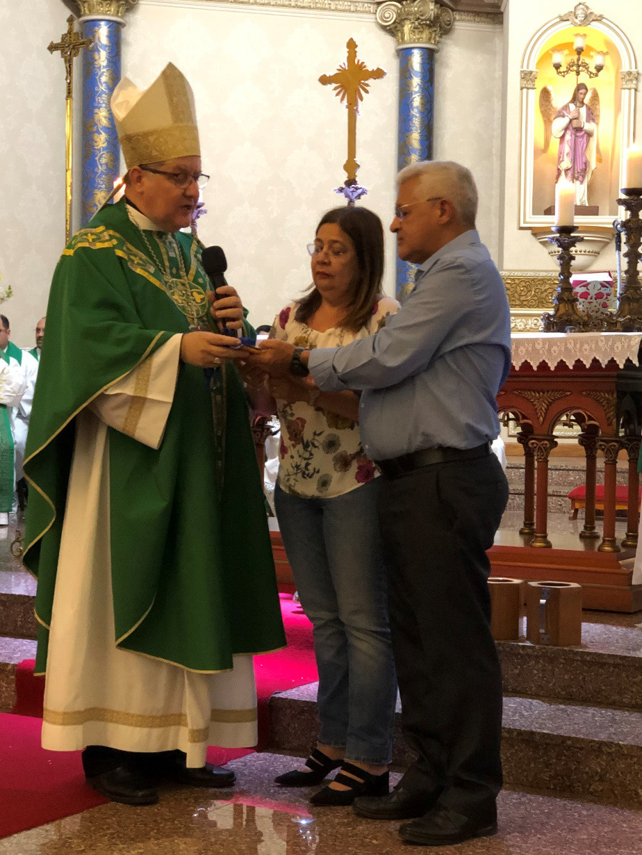 Ao final da Santa Missa de sábado dia 26 junto à comunidade da Paróquia Sagrado Coração de Jesus o Assistente Eclesiástico Nacional Dom Adair José Guimarães oficiou a nomeação e posse do novo casal que a partir desta data compõe a Secretaria Nacional para mandado até outubro de 2023. O casal Emanuel Acaiaba Reis de Souza e Eliene Medeiros de Souza Reis residem em Palmas/TO e irão substituir o casal Bandeira e Cleide que encerram seu mandato junto ao Serviço Escola – E.C.C. Dom Adair agradeceu ao casal emérito pela dedicação ao trabalho realizado junto à Secretaria Nacional, por sua atuação e trajetória, seu legado será sempre visto com respeito e admiração.