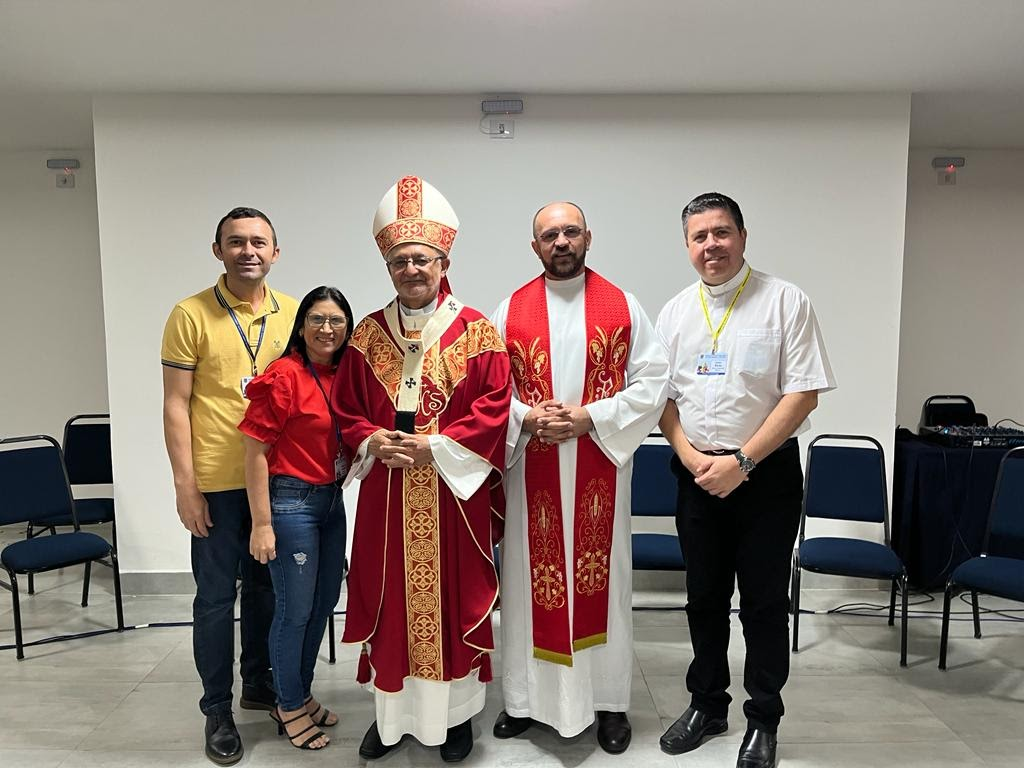 Pe Francisco (Diretor Espiritual da Arquidiocese da Paraíba), Dom Delson (Bispo da Arquidiocese da Paraíba) e Marinaldo e Auzeny (Casal Arquidiocesano da Paraíba)