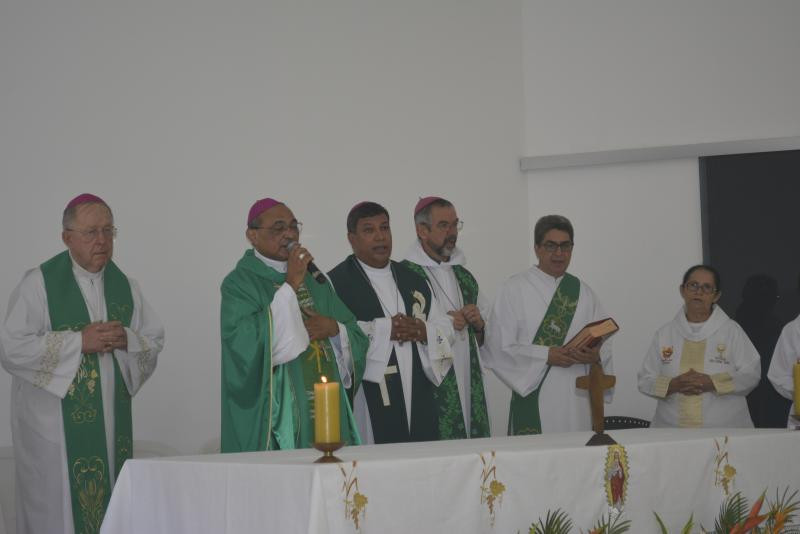 Dom Romualdo (Bispo de Porto Nacional), Dom Pedro Brito Guimarães (Arcebispo da Arquidiocesano de Palmas), Dom Benedito Gonçalves dos Santos (Assistente Eclesiástico Nacional) Dom Felipe (Bispo da Diocese de Miracema do Tocantins) e Diacono Claudio