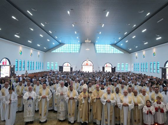 Celebrantes e participantes da missa de 16/08/25 do XIX Congresso da Região Sul