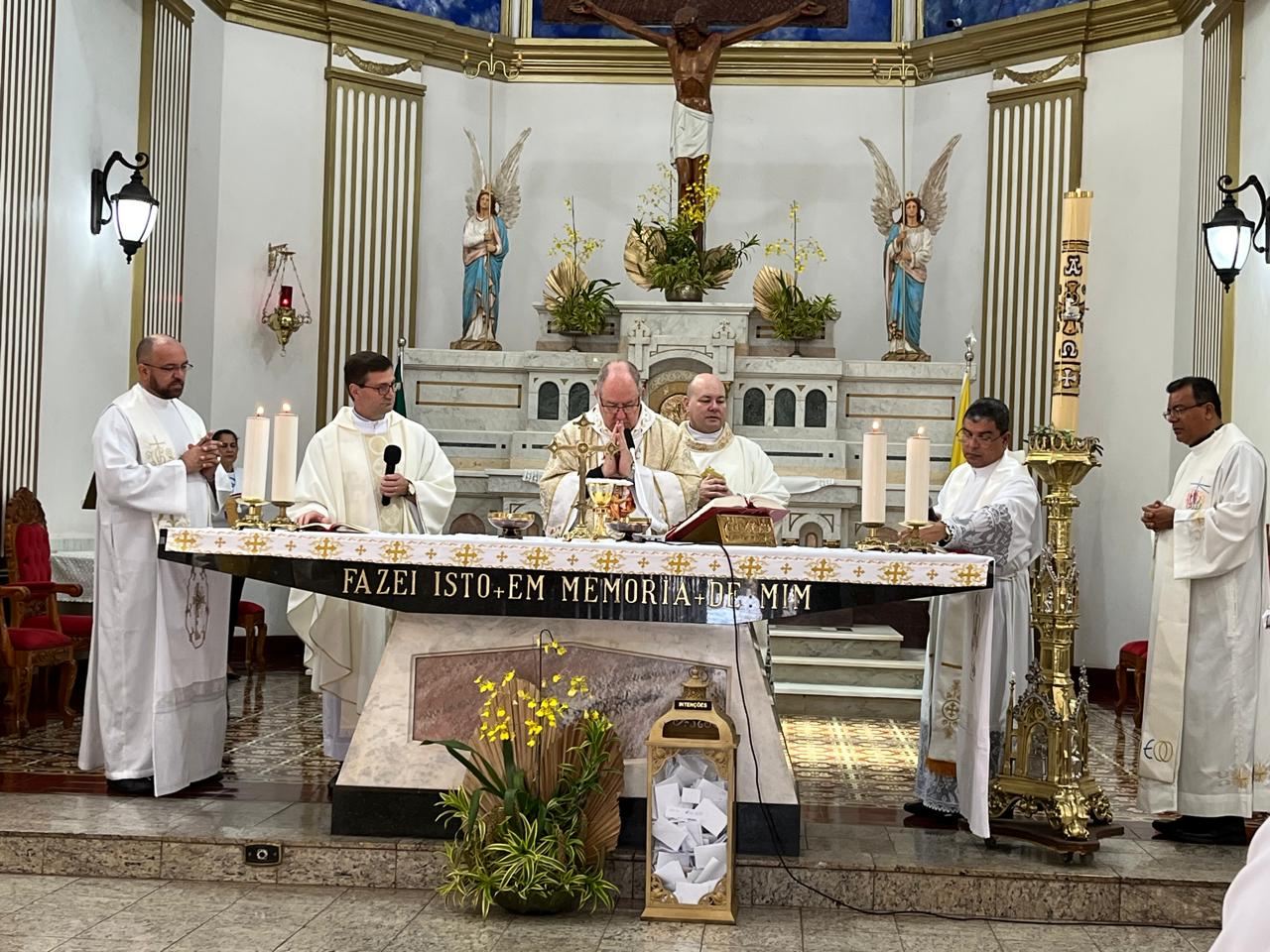A Santa Missa do sábado dia 27 de abril de 2024, foi presidida por Dom Benedito Gonçalves dos Santos e concelebrada por Dom Adair José Guimarães, Assistente Eclesiástico Nacional, pelos Diretores Espirituais Regionais presentes e o Padre Luiz Laudino da Arquidiocese de Londrina, na Paróquia São José