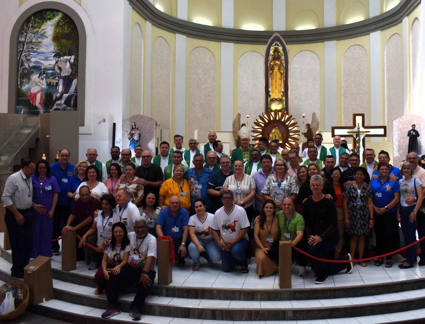 A Santa Missa de domingo dia 1 de setembro de 2024, com os celebrantes, os casais da Secretaria Nacional e do Conselho Nacional.