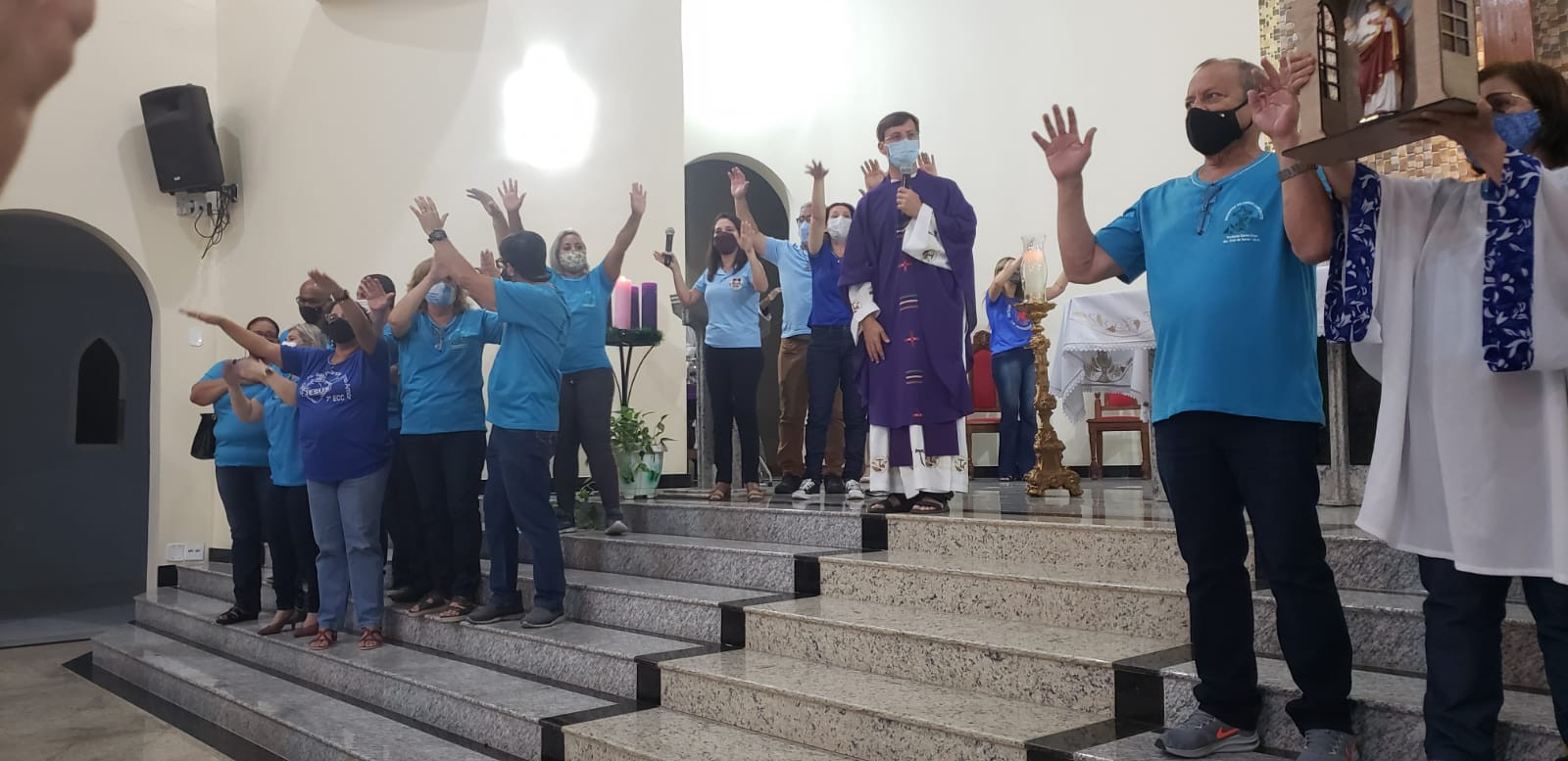No dia 19 de dezembro de 2022 foi realizada uma Missa do ECC e da Pastoral Familiar, na qual foi apresentada a nova Equipe Dirigente de 1° Etapa da Paróquia Santa Cruz/Diocese de Duque de Caxias Leste1. Desta forma, a comunidade paroquial teve a oportunidade de conhecer os novos integrantes da Equipe Dirigente. O Casal Regional, Gualter e Tania e o Casal Ligação Setorial, Marco e Rosane com o Frei Edcarlos fizeram as apresentações. Tivemos a presença do ícone do Congresso na Procissão de Entrada.